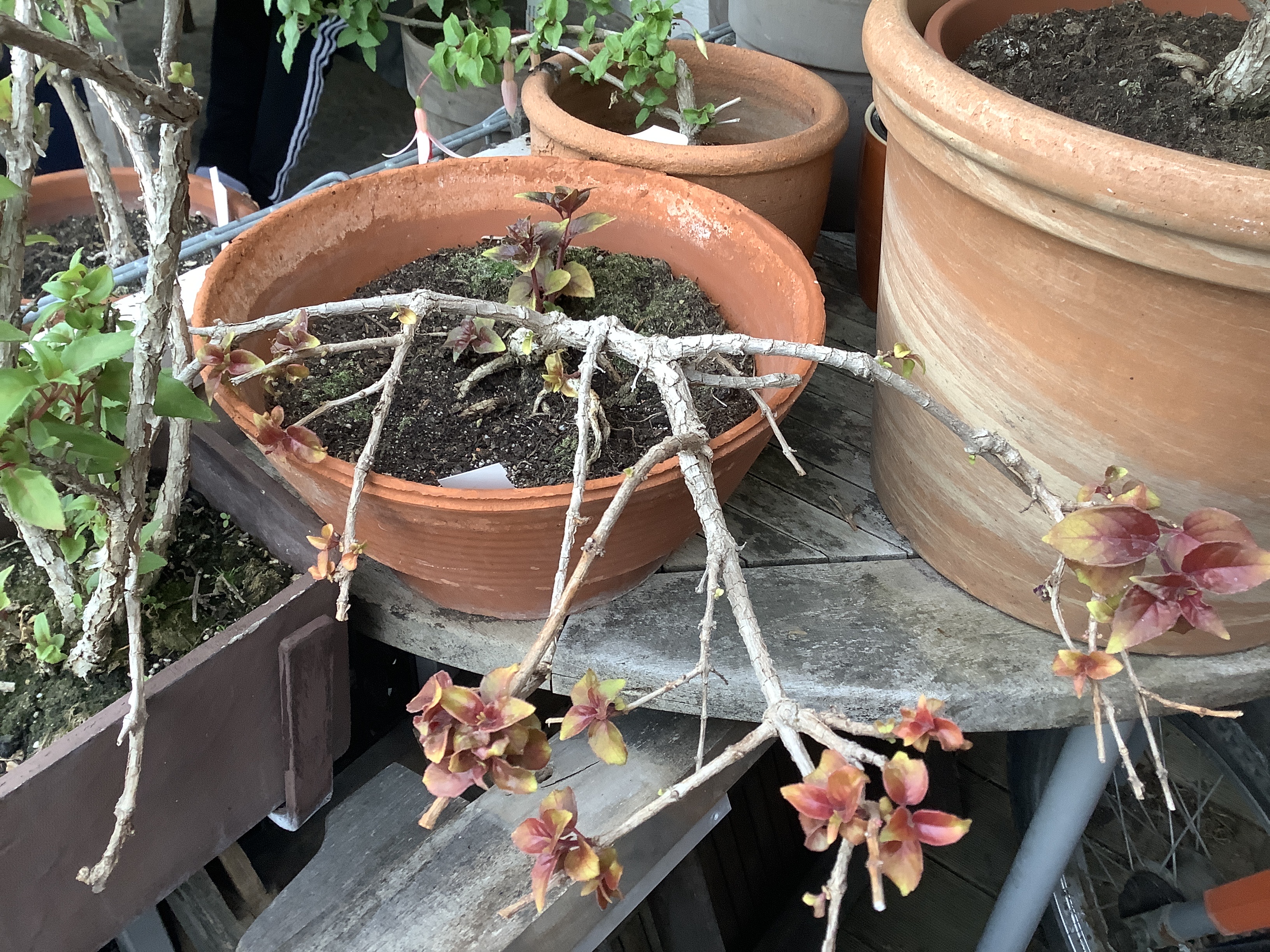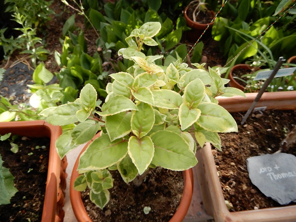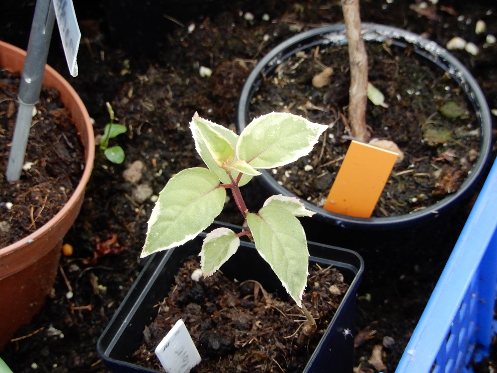 Die Pflanze vom letzten Jahr habe ich vor 2 Wochen radikal zurück geschnitten. Sie hat den Winter über gruselig ausgesehen und zum Frühjahr wurde es nicht besser. Also alles ab. Sie treibt nun wieder freudig aus. Hatte im Herbst Stecklinge gemacht, die auf dem Bild zu sehen sind. Buntblättrige sollen ja wärmer und heller überwintert werden. Habe ich hier jedenfalls gelesen.