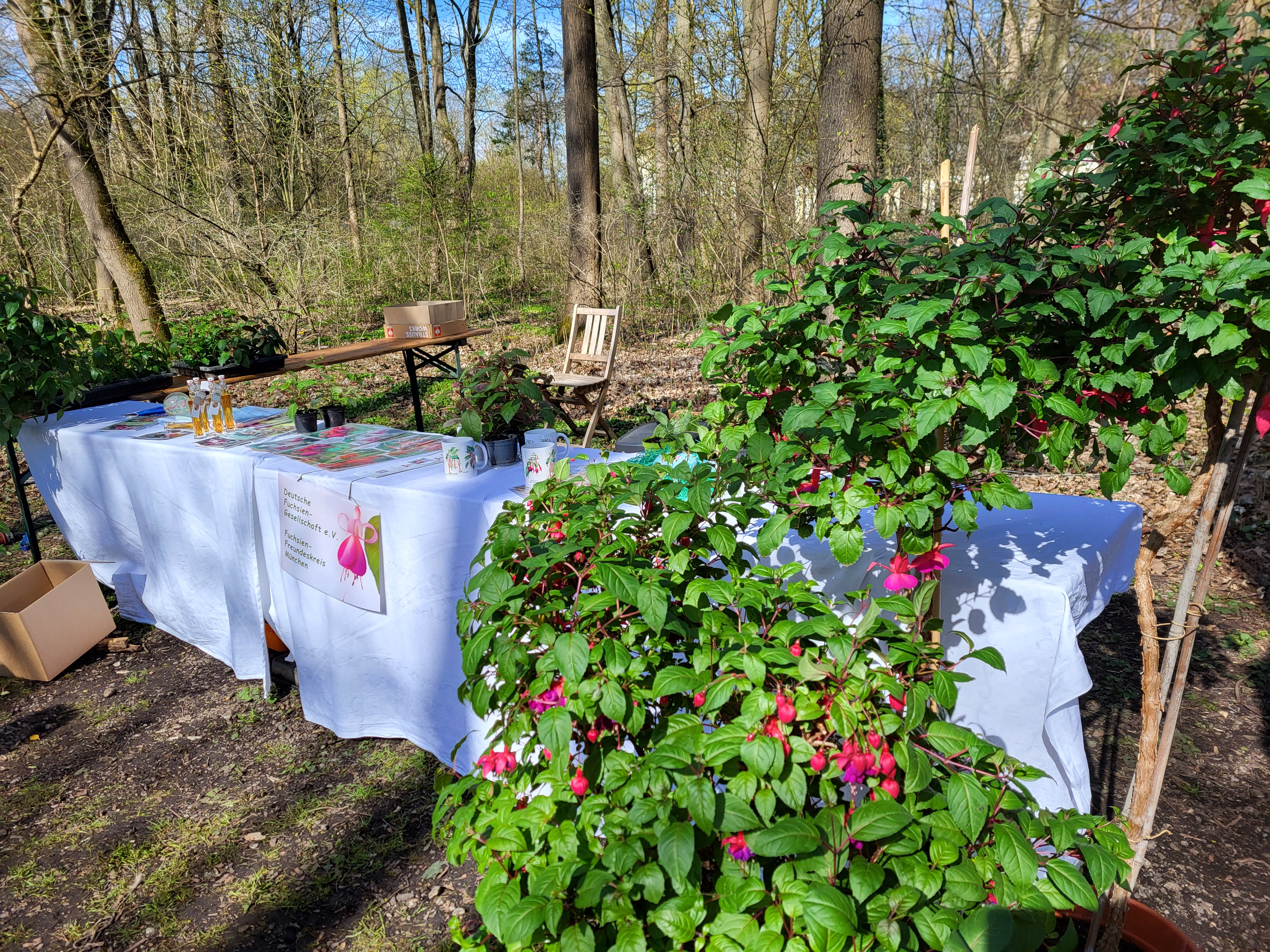 Wir wollen Interessierte ansprechen und haben einige Jungpflanzen und Broschüren wie "Winterharte Fuchsien" dabei.