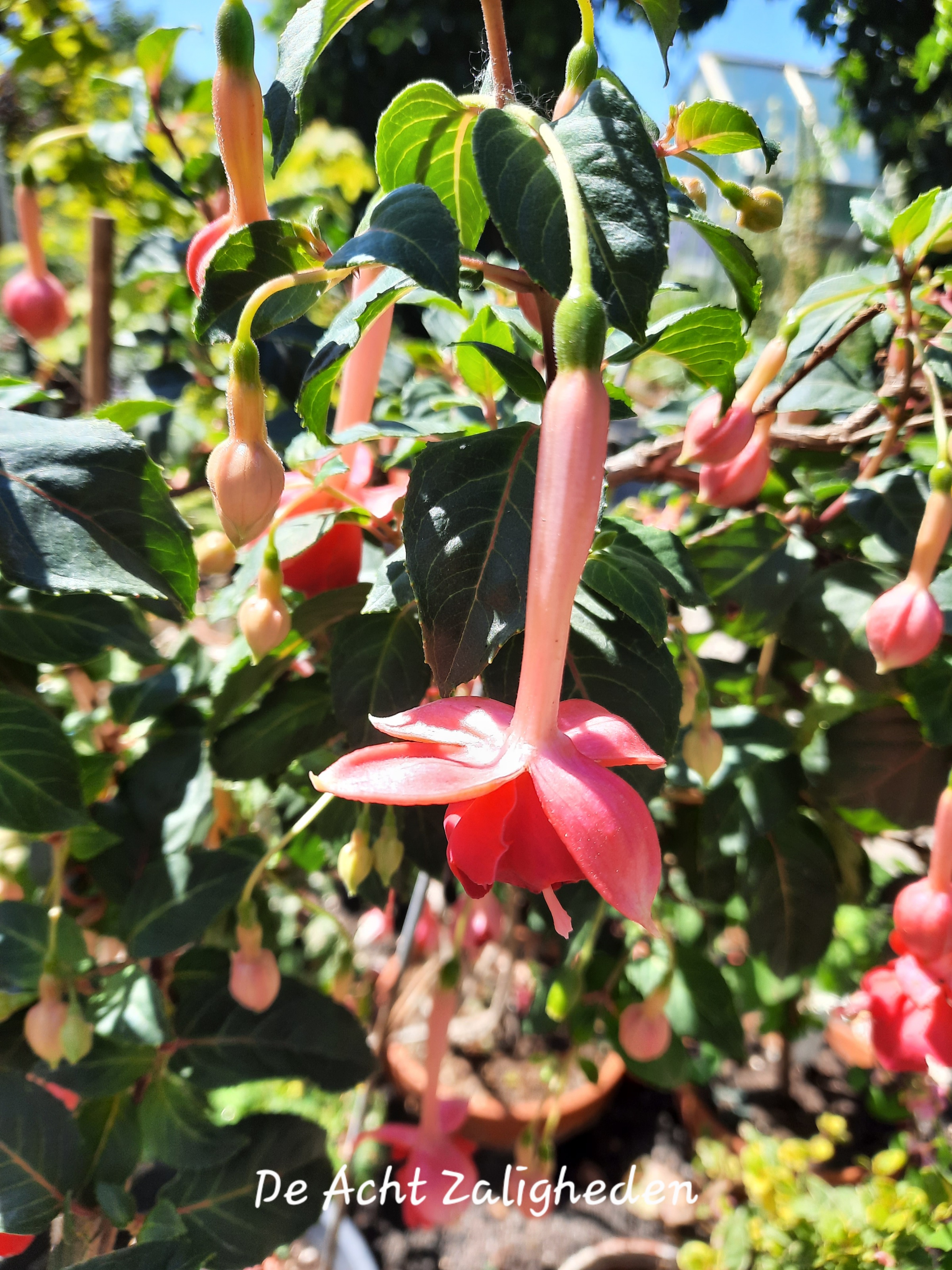 Bei mir steht sie den ganzen Tag in der vollen Sonne. Das scheint ihr zu gefallen , denn sie blüht dauerhaft. Die Schädlinge gehen auch nicht dran, daneben stehen andere Fuchsien, die in diesem Jahr vom Rapsglanzkäfer total zerfressen sind.