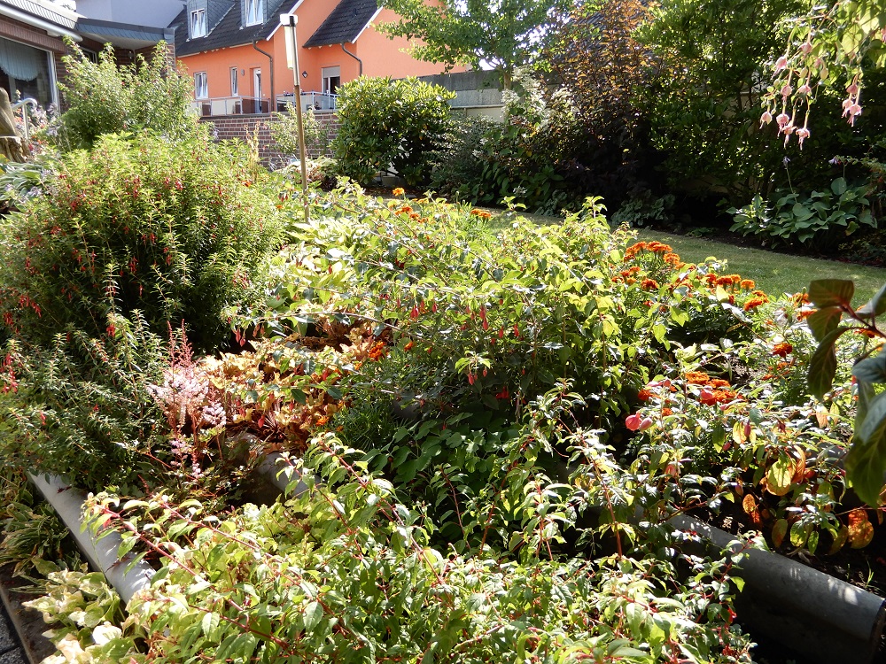 Die Fuchsien müssen mit ganz unterschiedlich guten Plätzen zurecht kommen.
