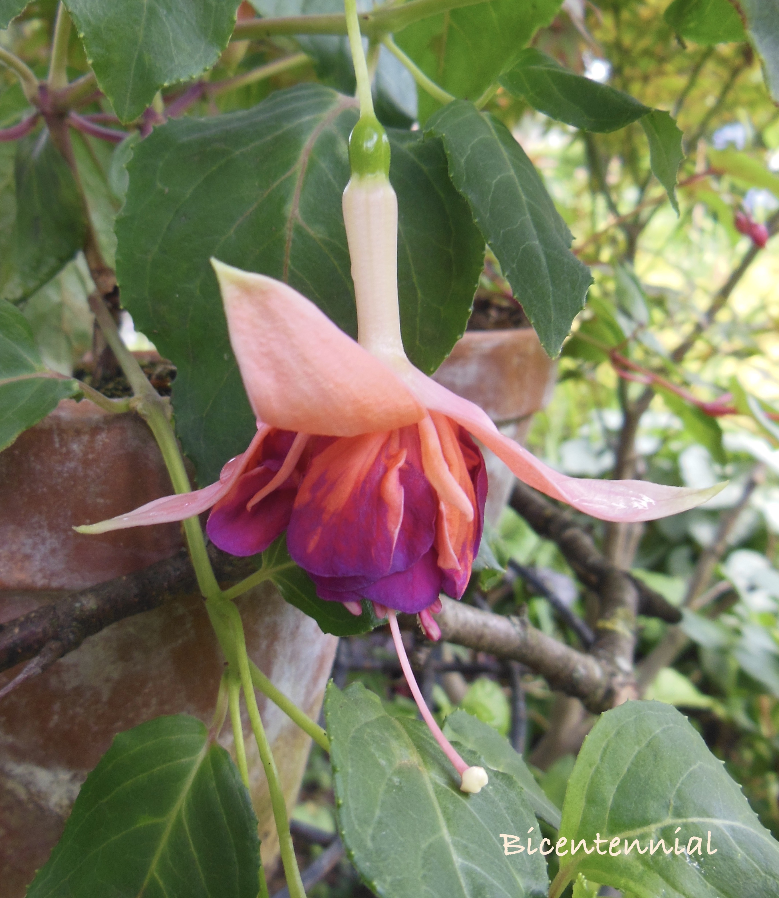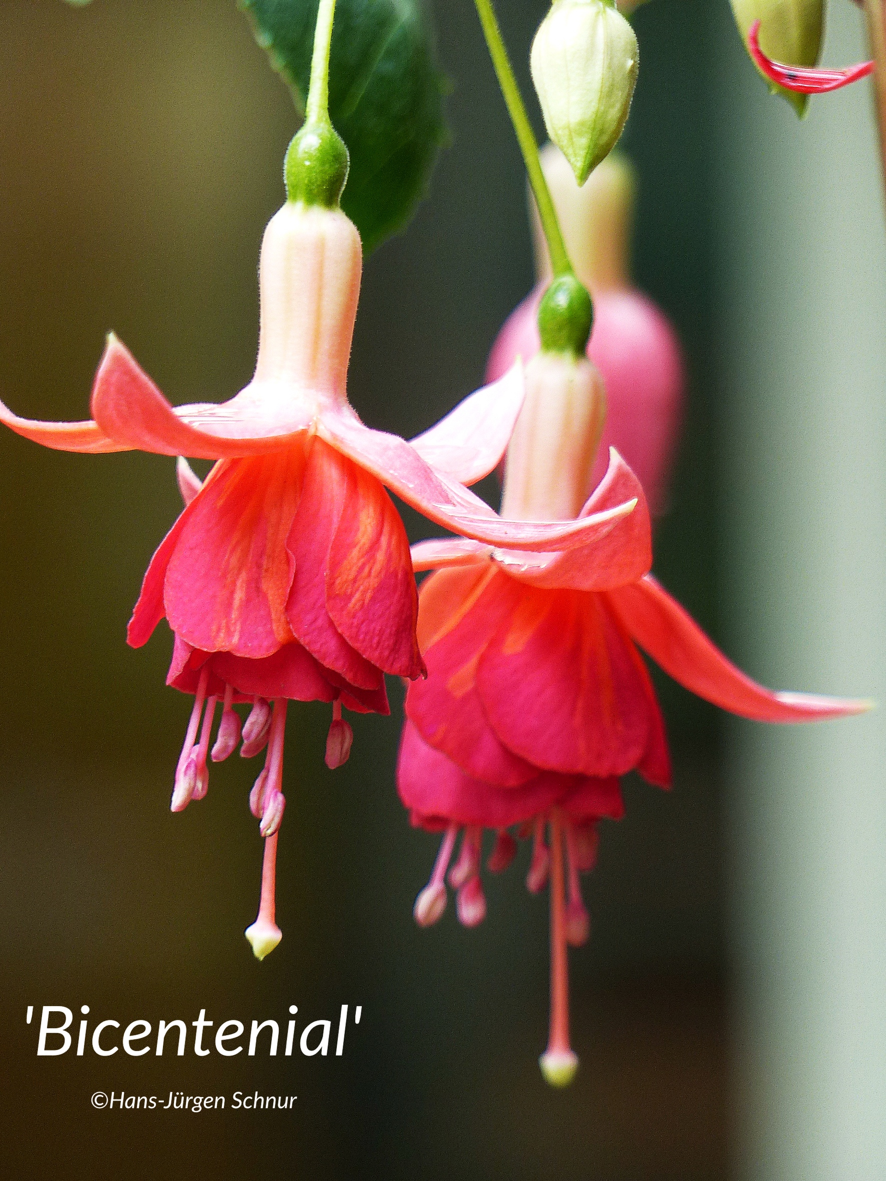 Die ’Bicentenial’ ist schon eine wunderschöne Sorte. Meine habe ich schon ca. 20 Jahre. In der 20er Ampel sind drei Pflanzen. Wenn mal eine eingeht, kommt ein neuer bewurzelten Steckling in die Ampel. Er wird mit Zopf in die Ampel eingesetzt. Der Boden des Topfes wir abgeschnitten und seitlich zweimal bis zum oberen Rand eingeschnitten. Wenn die Pflanze gut angewachsen ist, schneide ich den Rest ein und ziehe die beiden Hälften des Topfes heraus. So hat die neue Pflanze eine gute Chance. Ich halte die Sorte für völlig unempfindlich. Im Winter darf sie nicht zu feucht gehalten werden. Wenn die Sorte bei jemandem immer wieder eingeht, würde ich die Pflegemaßnahmen verändern oder mir anderswo einen Steckling besorgen. Ich hatte schon Fuchsien, die bei mir vor sich hin dümpelten und bei einem Fuchsienfreund Prachtexemplare waren. Ich habe mir dann einen Steckling geben lassen und mich von meinem Exemplar getrennt. Das haben wir auch schon umgekehrt gemacht.