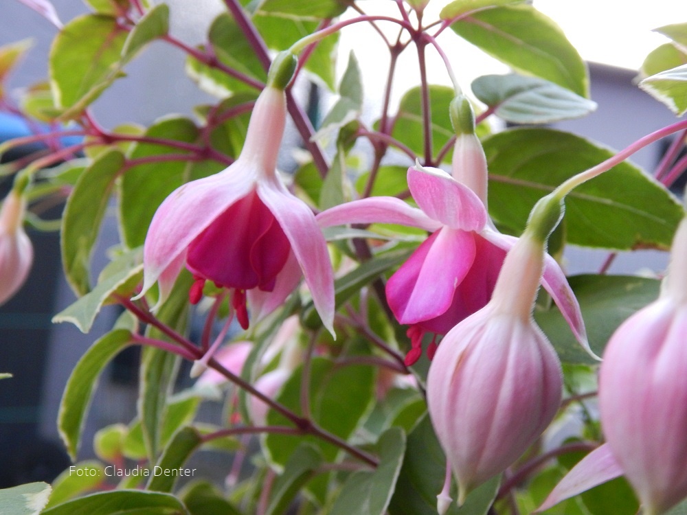 Es ist eine Fuchsie die bei mir schon auf allen Plätzen stand. Überall gedeiht sie, wächst aber bei mir nicht allzu üppig.