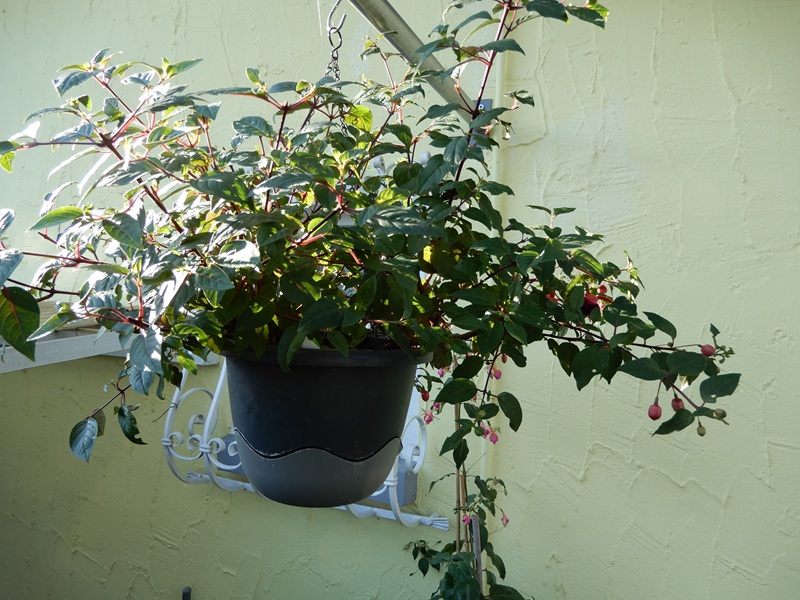 Also hängte ich sie in diesem Jahr als Ampel auf die Terrasse wo sie im lichten Schatten hängt.