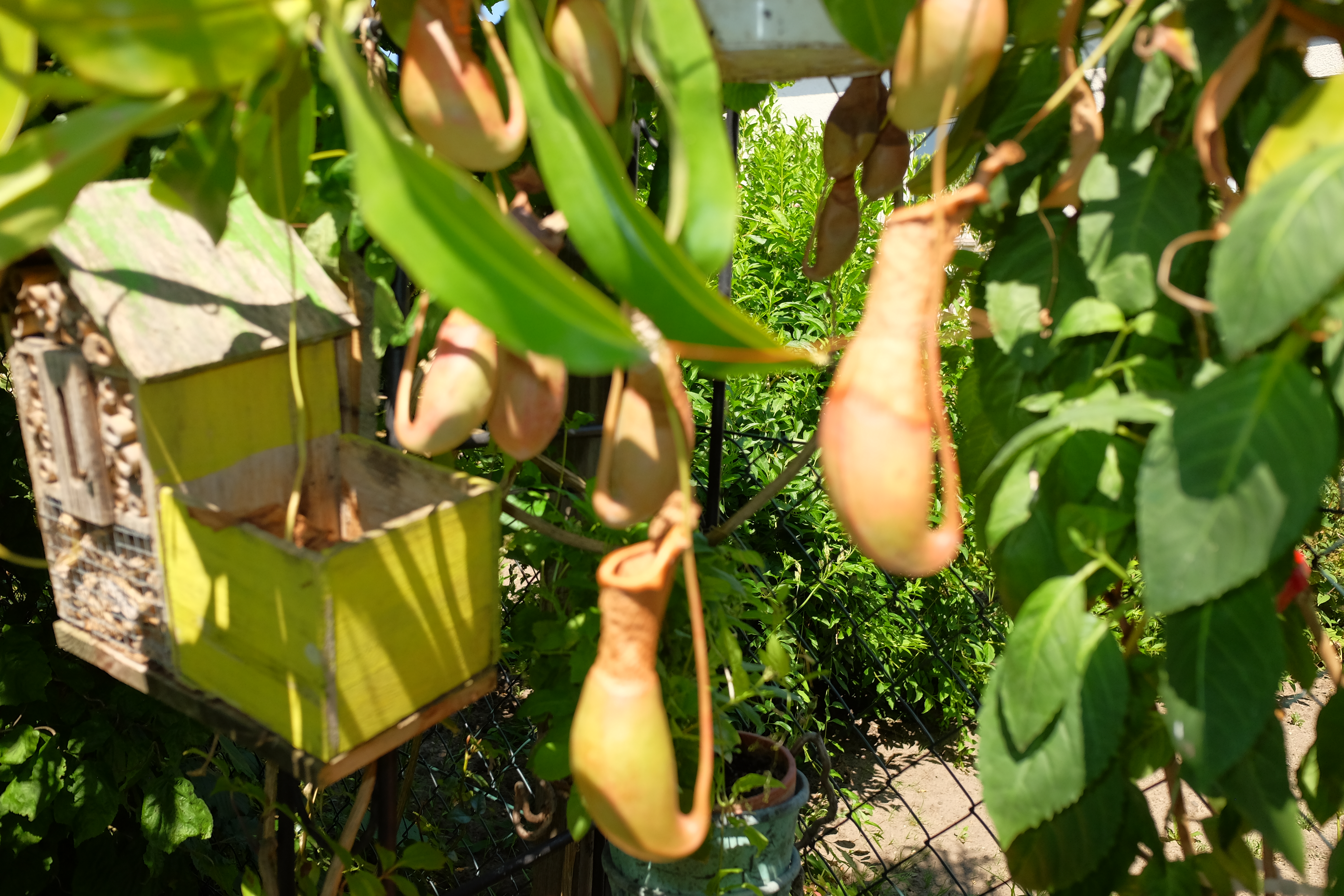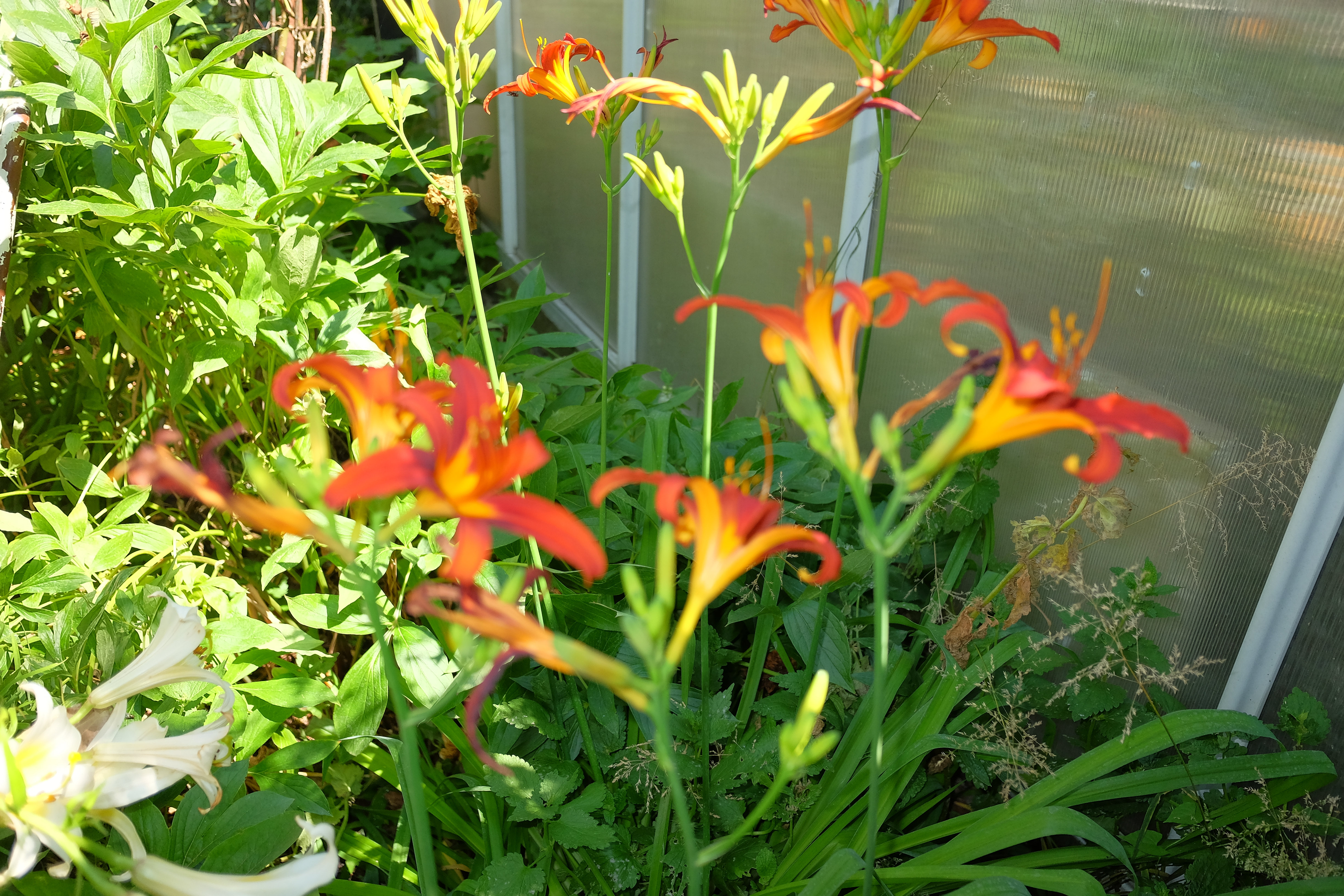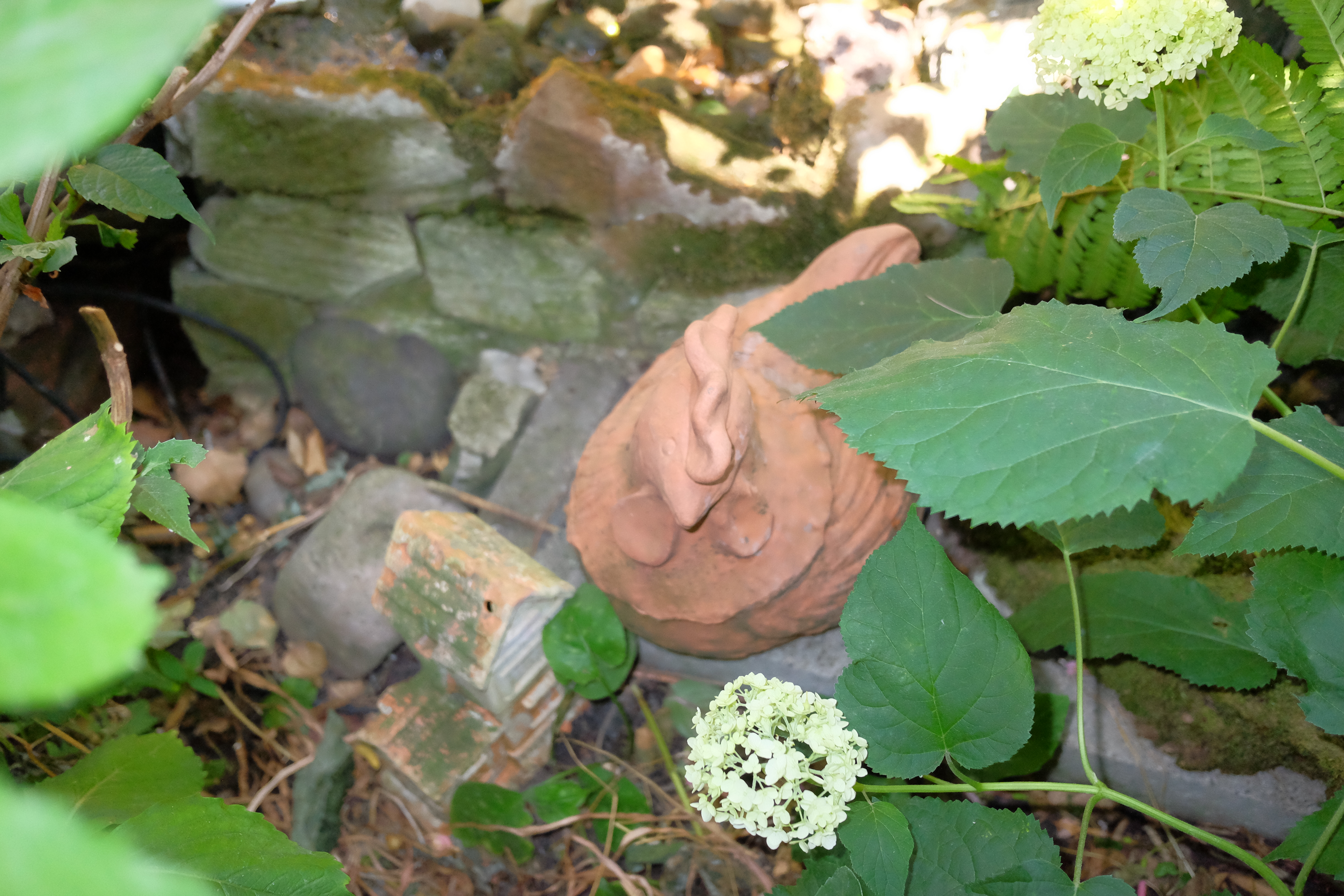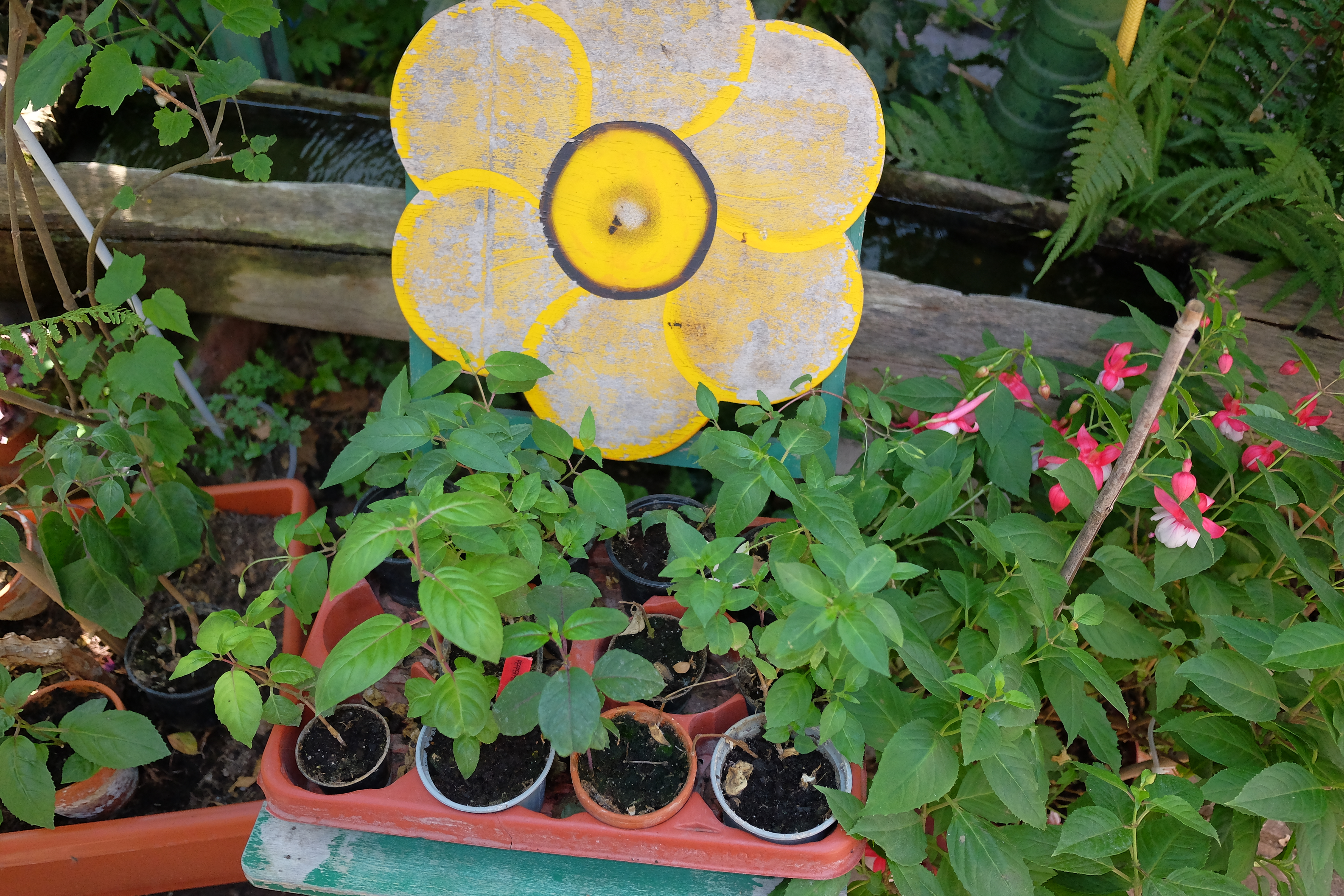 Aber nun zu unserem erweiterten Freundeskreistreffen. Michaela kannte ich ja schon vom letzten Jahr, neu dabei war diesmal auch Silke aus dem Saarland. Fuchsien hat Edeltraud glaube ich nur sehr wenige…. Ich jedenfalls habe kaum welche gesehen(Spaß).Deswegen habe ich mich, überwältigt in Anbetracht der Mannshohen (Frauhohen?) Fuchsien, auf die Nebensächlichkeiten konzentriert. Da ich schon geahnt habe, dass viele Fuchsienbilder eingestellt werden, hier nun ein Teil vom restlichen Garten…