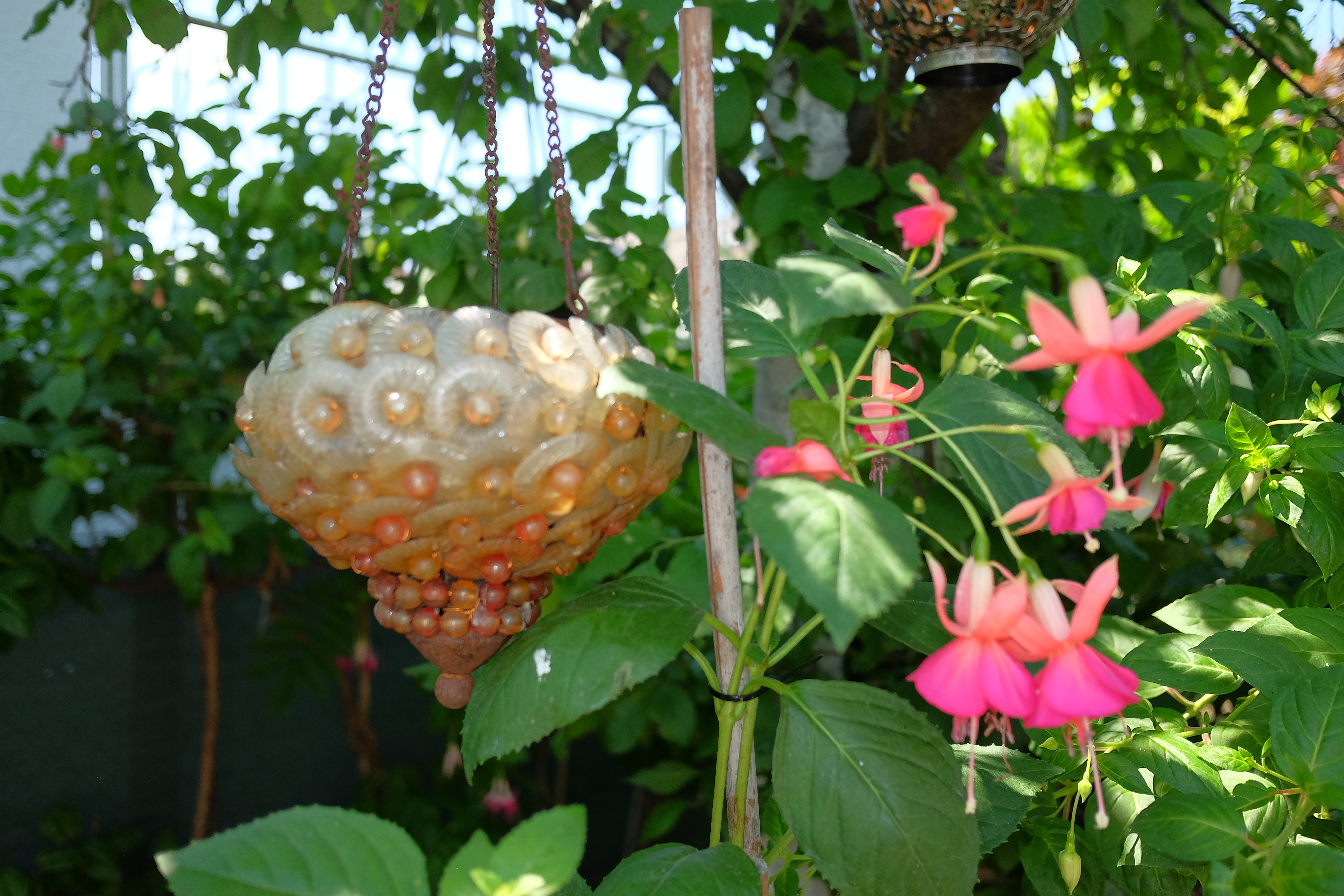 Laut Edeltraud sahen ihre Fuchsien furchtbar aus . Die Hitze, wochenlang Temperaturen über 35 Grad, bekommt Fuchsien nicht. Außerdem hätte ein Sturm ihre Schönheiten zerzauselt.