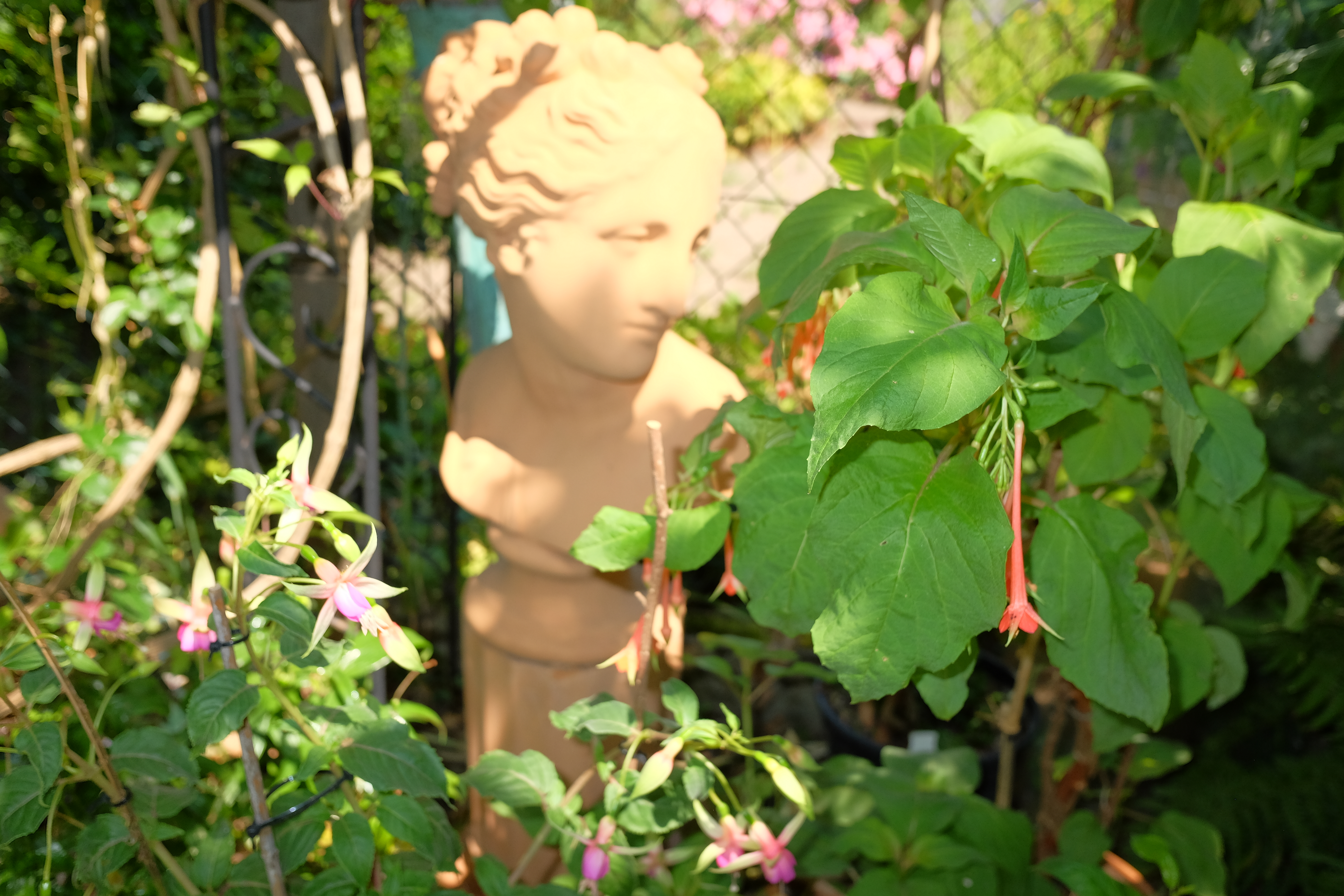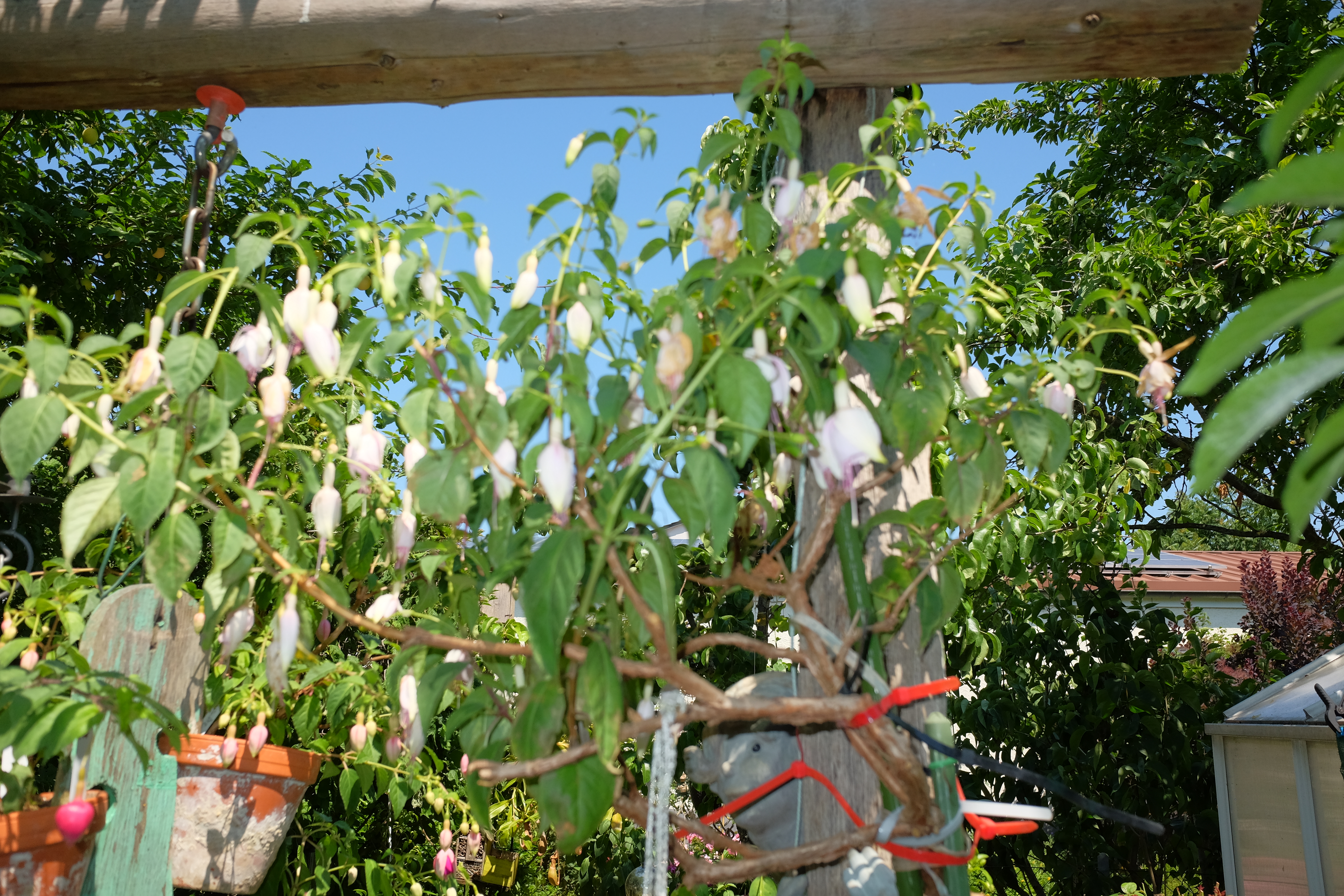 In dem Garten sind wirklich richtige Prachtexemplare. Nicht zu vergleichen mit meinen Pflanzen die in meinem Garten sind. Fuchsien für die man eine Leiter braucht um sie auszuputzen. Es gab zwei Seiten im Garten, wo die einen Fuchsien schön frisch aussahen und die anderen die das Pech hatten in der pralle Sonne zu stehen. Aber auch das kennen wir alle leider nur zu gut.