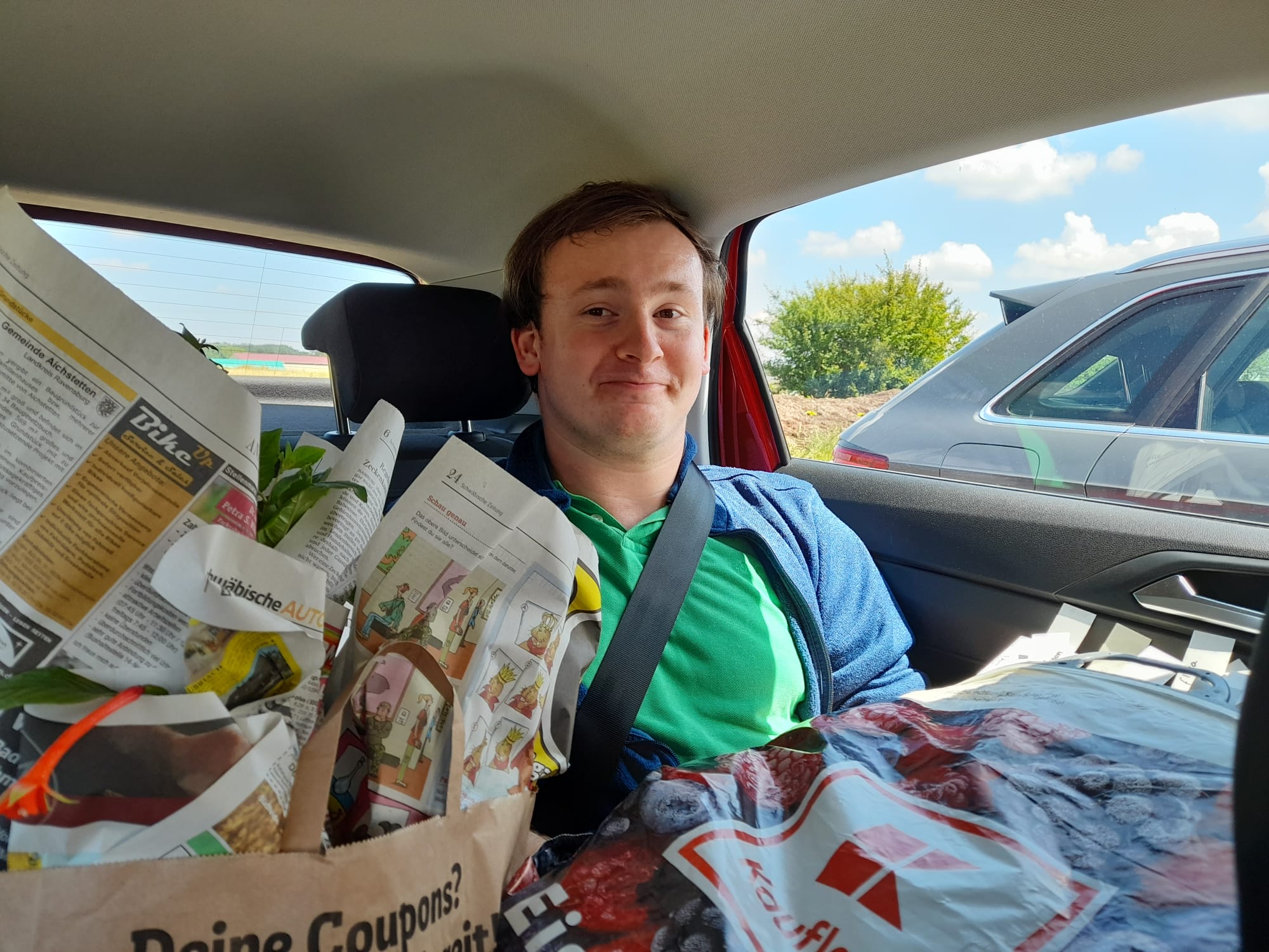 Unser Auto war dann auch schon voll :lol: Nils musste einen Teil der Fahrt zu Edeltraud so verbringen...