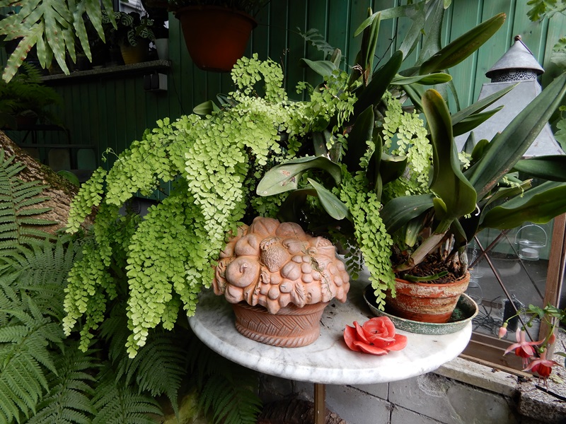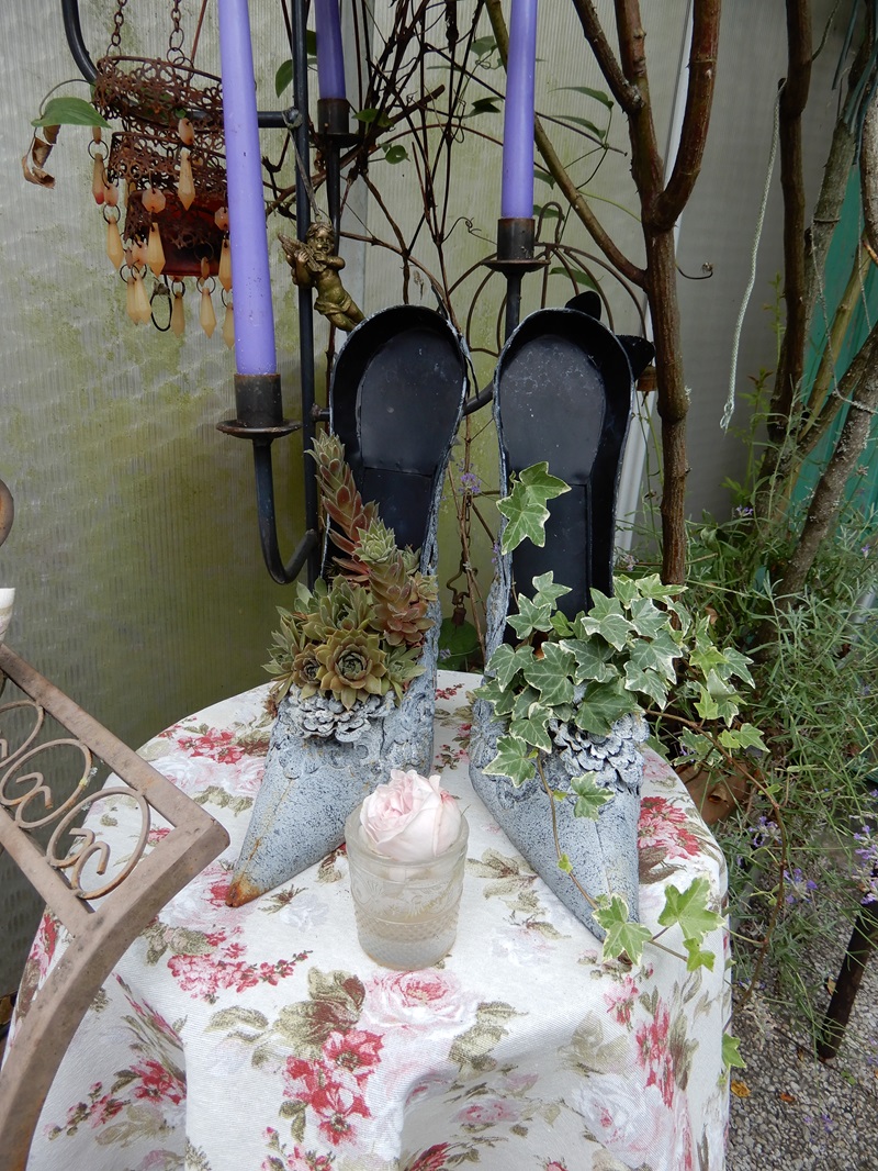 Ich hatte den Garten von Edeltraud schon oft gezeigt. Da habe ich mich in diesem Jahr, neben den tollen Fuchsien, auch auf ihre geschickt eingefügten Dekorationen konzentriert.
